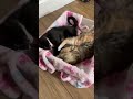 Cyrus is a super affectionate little tuxedo kitten who loves nothing better than cuddling in your lap for a little nap. He loves batting around small toys and hanging out with his sisters. His is always happy and is always purring. Cyrus is an outgoing kitten who will easily acclimate to a new home. He was raised in a home with a large gentle dog. Cyrus and his sister, Kylee, must be adopted together.